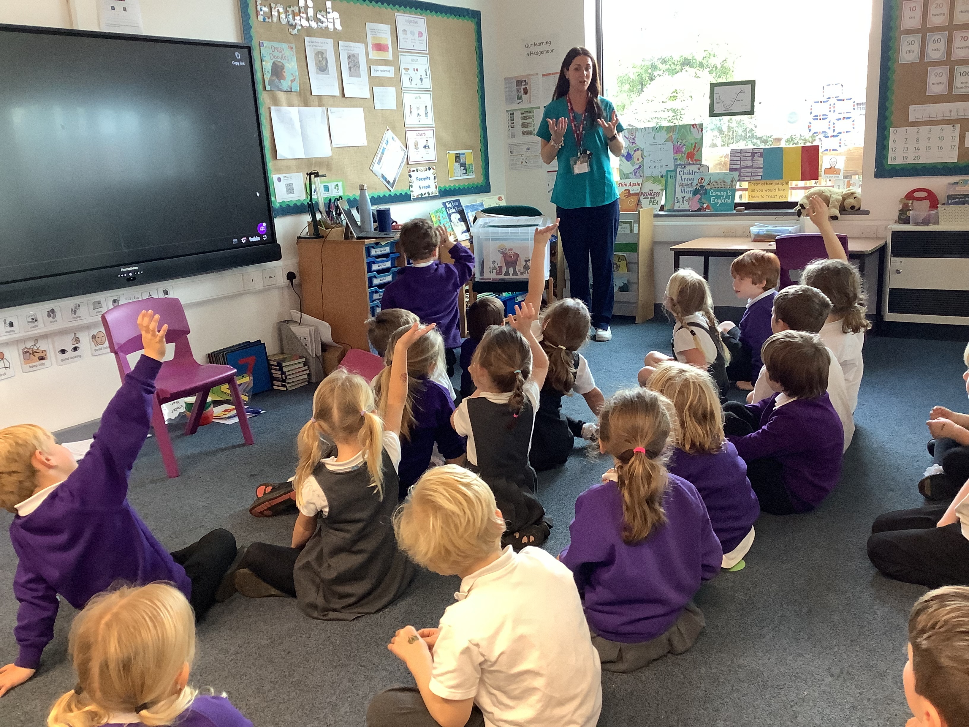 Hedgemoor Dental Visit On Tuesday afternoon, Hedgemoor had a visit from Marsha, a dental nurse. She reminded us all about good tooth brushing habits and keeping our teeth healthy. We watched a fun video about Geoffrey the Giant who forgot to brush his teeth. His friends helped him to learn about healthy teeth habits.