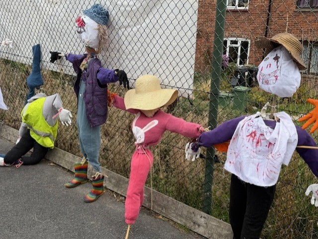 Scarecrow Making Afternoon Thank you to all the parents and family members who joined us to make scarecrows this afternoon. Great fun was had by all creating wonderful scarecrows with names and their own personalities!! Thank you to everyone who donated clothes, straw and their expertise to make sure this event was a success. If you would like to meet our scarecrows they will be displayed in the school playground next week.