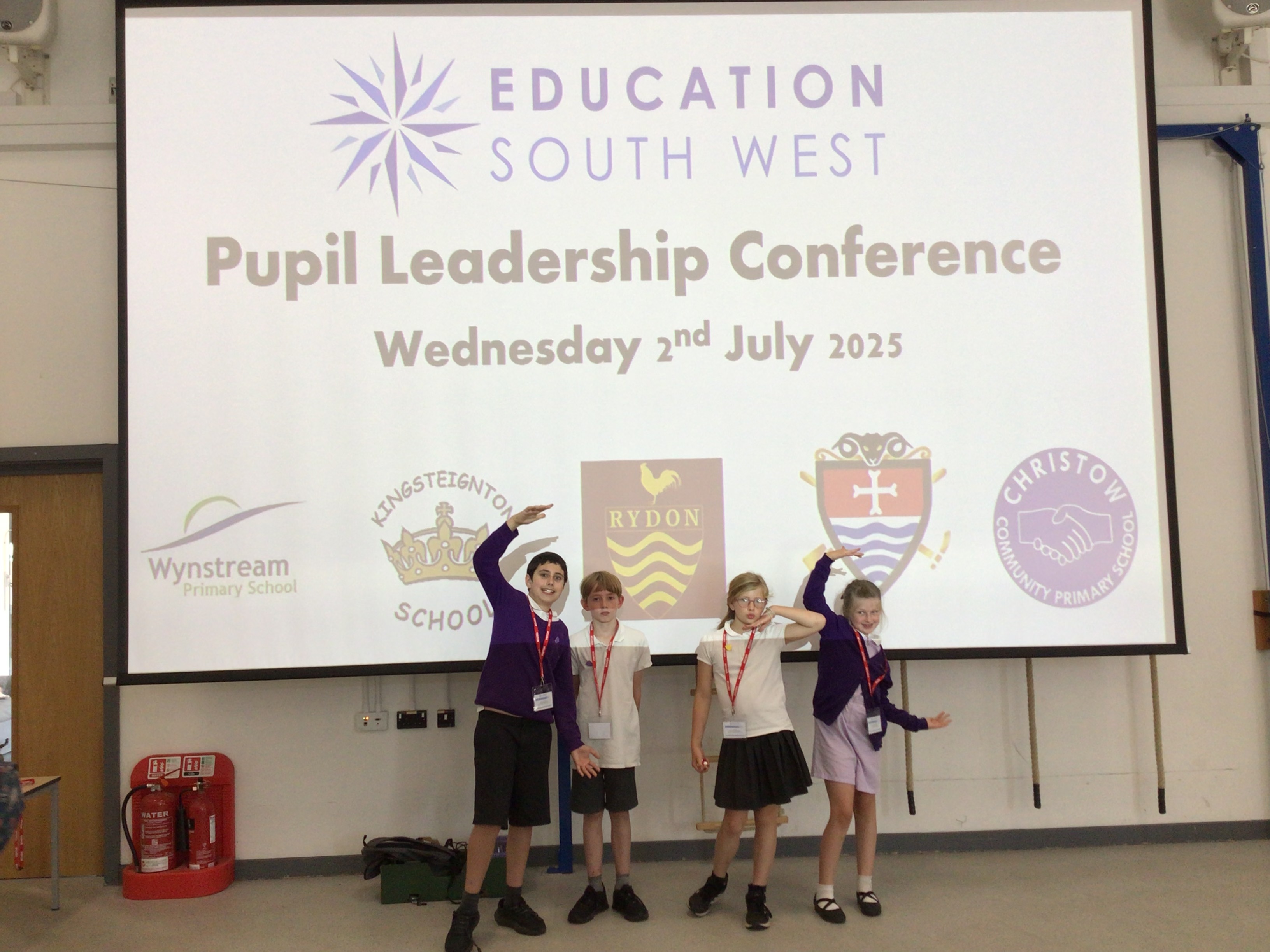 ESW Pupil Leadership Conference. On Wednesday a group of pupils attended Kingsteignton Primary School for the ESW Pupil Leadership Conference 2025. Our school was represented by a House Captain, two School Councillors, a Year 6 Play Leader and our Year 4 Rights Respecting Ambassador. The pupils delivered a presentation about the work they do in schools and the impact that has both in and outside of our school community. The pupils listened to a Key Note speech from Matthew Shanks, ESW CEO and MP Martin Wrigley. They had the opportunity to speak to leaders in other primary schools and bring back ideas for how we can develop our leadership opportunities next year.